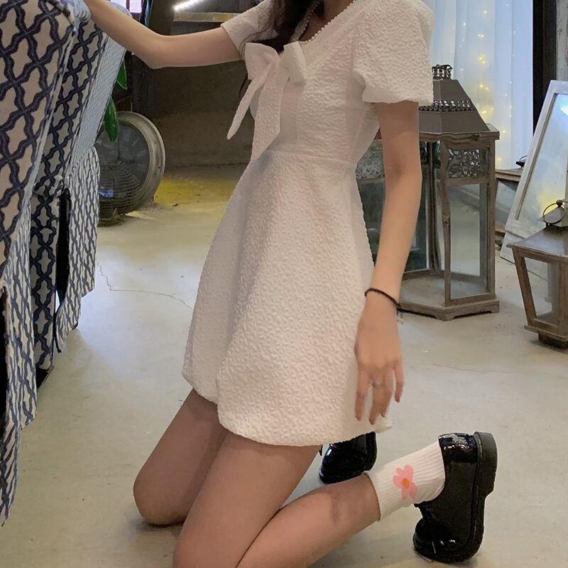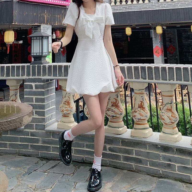 サマーリボンウェスト薄手ドレス スタイル 夏物 スクウェア misskkl96181607073