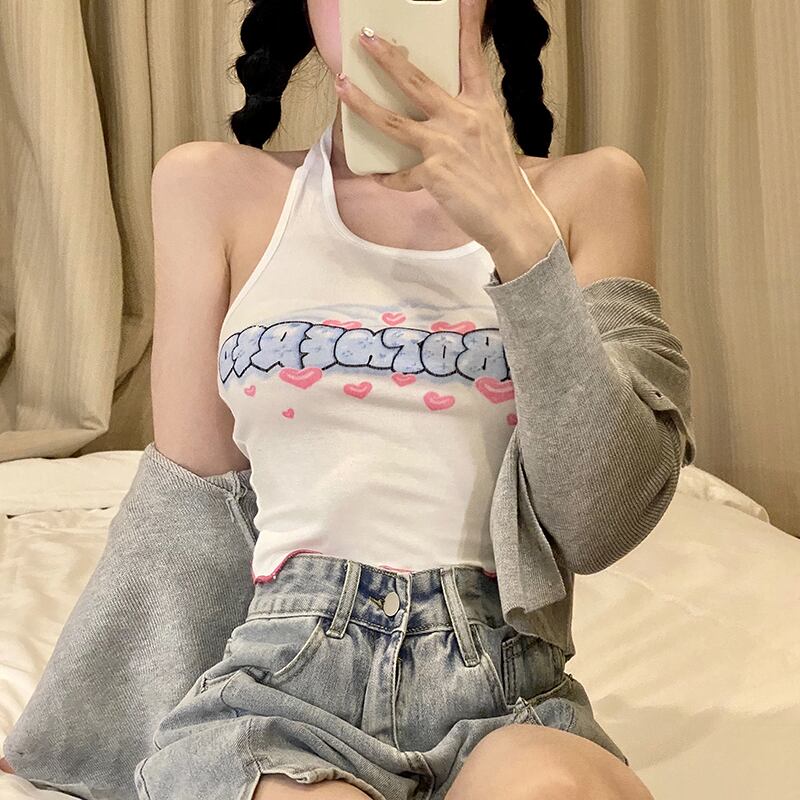 色:グレーのカーディガン,白いベスト,デニムショートパンツ