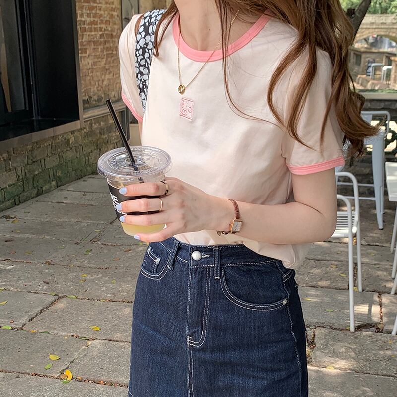 サマーカラーショートラウンドネックTシャツ トップス 夏物 Oネック misskkl12168876131