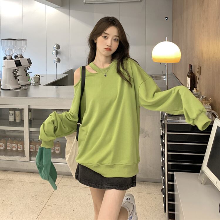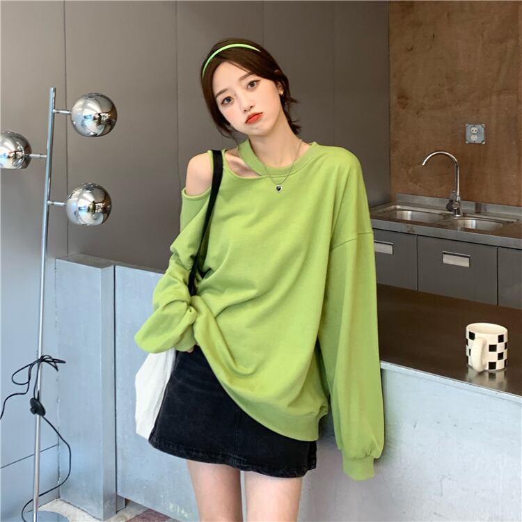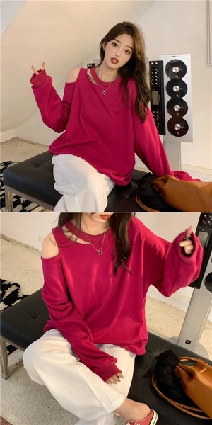 カラーセーター オータムストラップレスルーズトップス ロング 秋物 misskkl92789944692