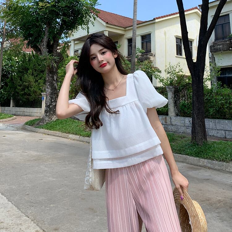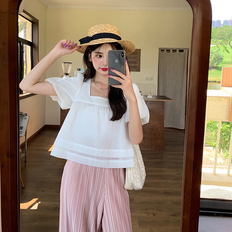 スリーブサマーシフォンシャツ カラー薄手ブラウス ルーズトップス 夏物 スクウェア misskkl59416099031