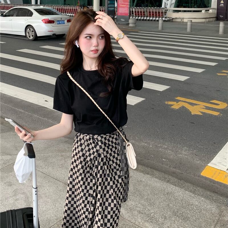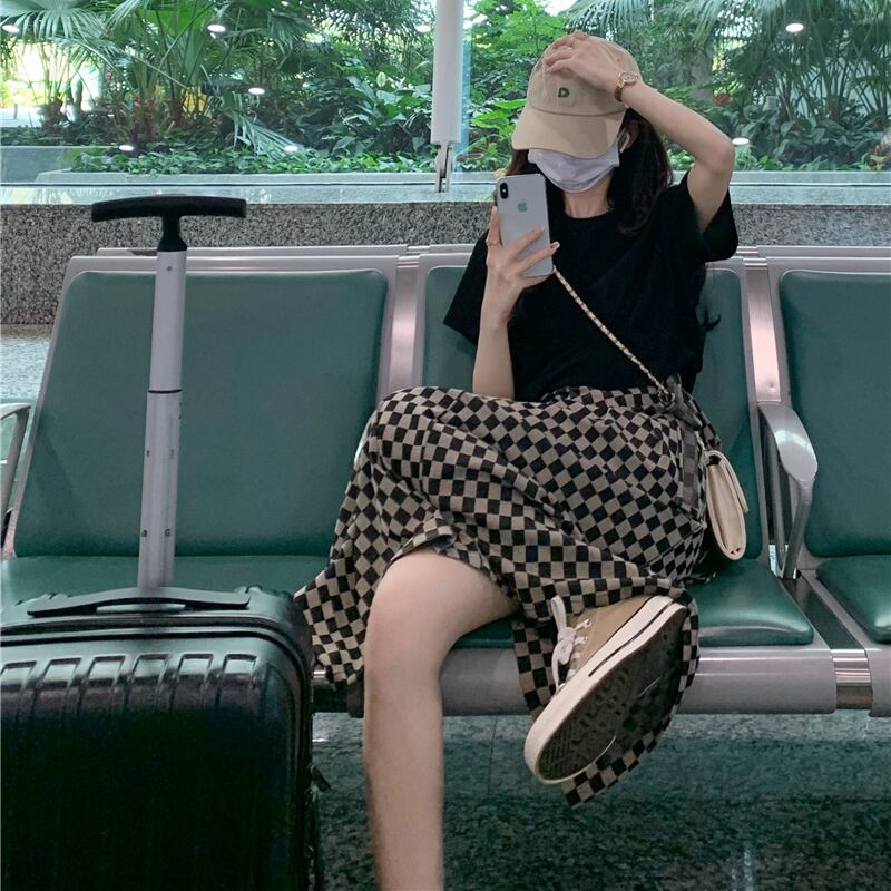 格子柄スカート サマーハイウェスト薄手Aラインスタイル 夏物 misskkl82089011928