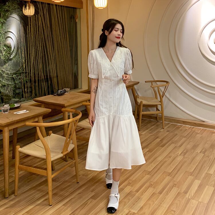 Vネックドレス サマーウェスト薄手ホワイトスカート レッド 刺繍 夏物 misskkl81052954393