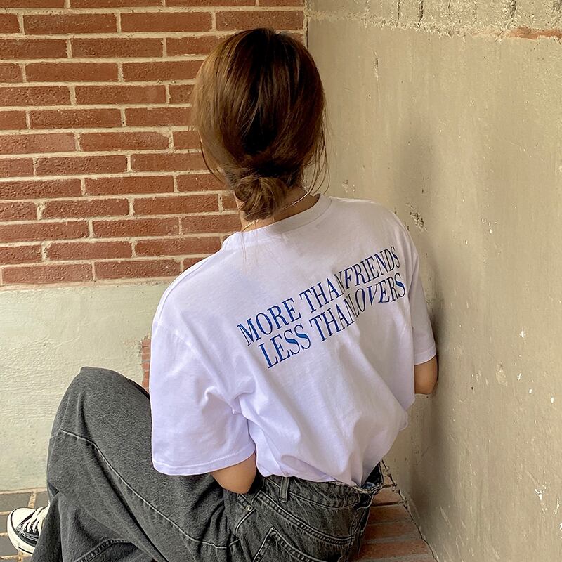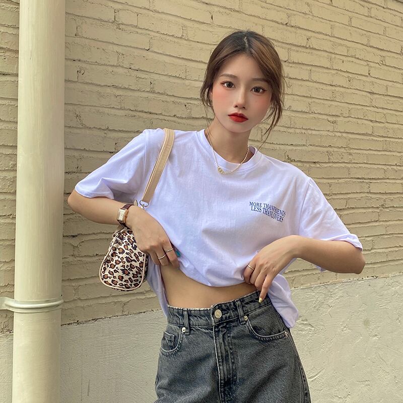 サマースタンダードルーズプリントホワイトTシャツ トップス レディース レトロ 夏物 misskkl38812815575