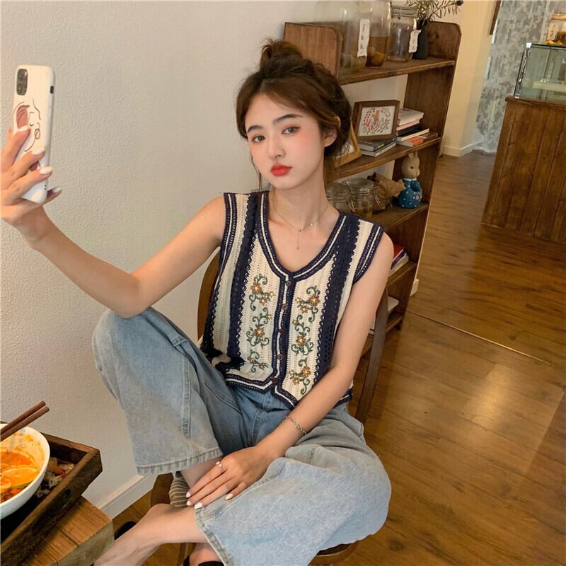 サマースタンダードショートVネックスタイルブラウス レトロ 夏物 misskkl98815839196