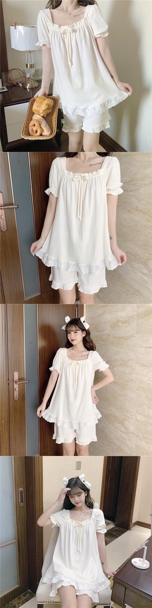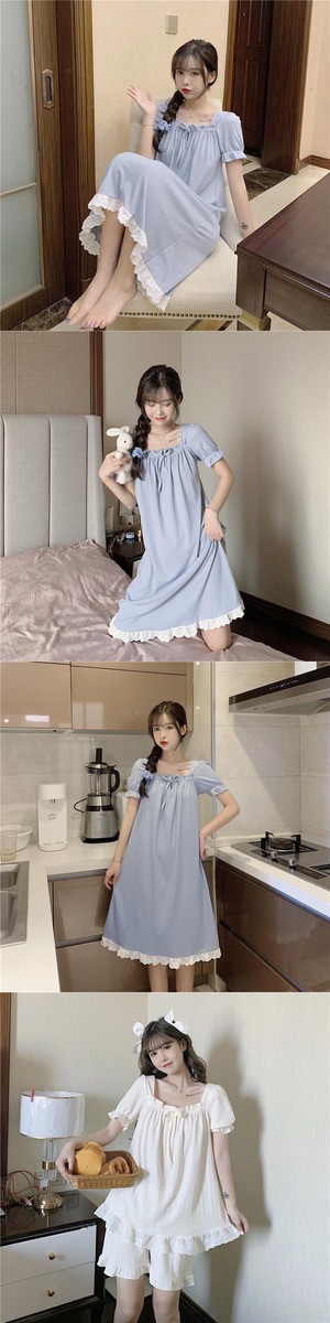 色:白いスーツ,青いスーツ,ピンクの寝間着,ピンクのスーツ,青い寝間着,オフホワイトのネグリジェ