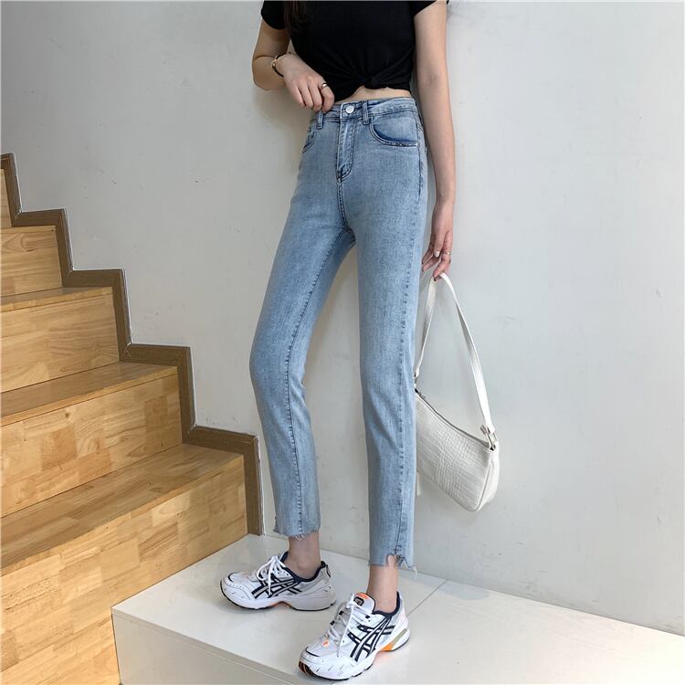 パンツ サマーハイウェスト薄手ブラックジーンズ 夏物 misskkl8643558489