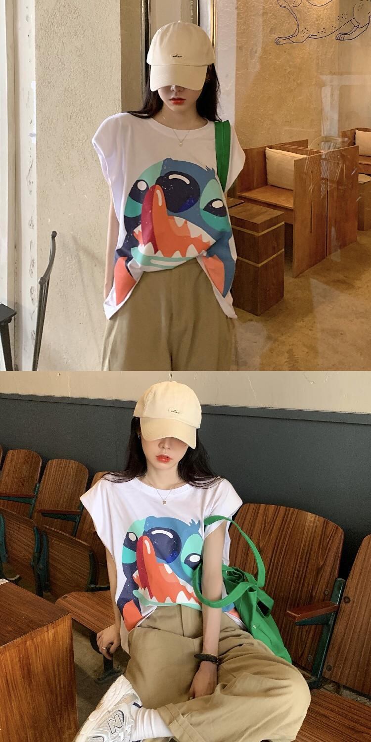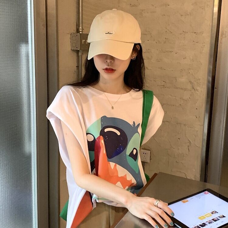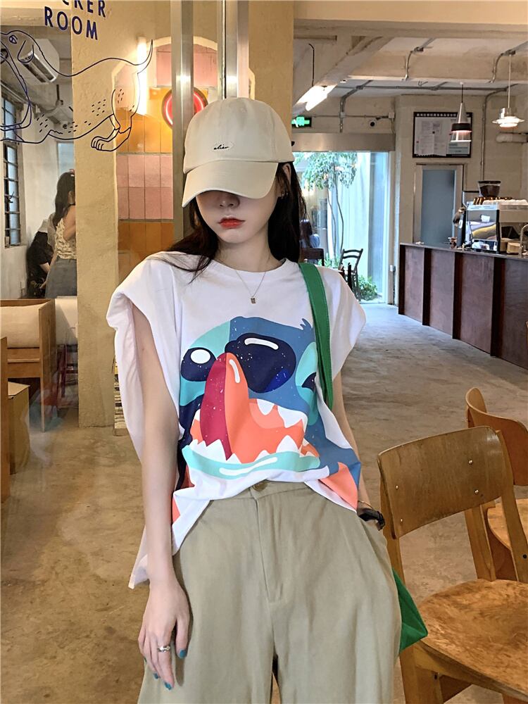 ノースリーブTシャツ レディースサマーカジュアルプリント柄ルーズトップス 大人ガーリー スウィート キュート 夏物 misskkl58336232986