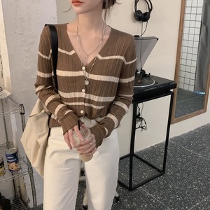 薄手セーター ストライプカーディガンオータムレッドトップス ロング 大人ガーリー スウィート キュート カジュアル 秋物 misskkl56319883573