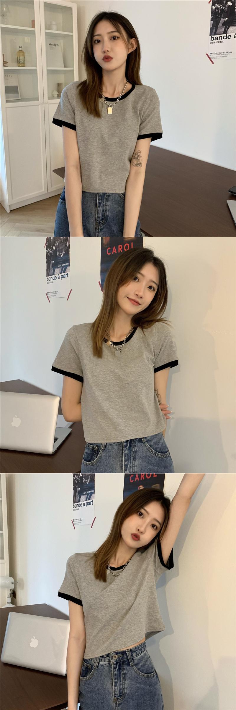 クロップトップ トップス サマーカラースリムショートTシャツ レディース 夏物 misskkl55829071455