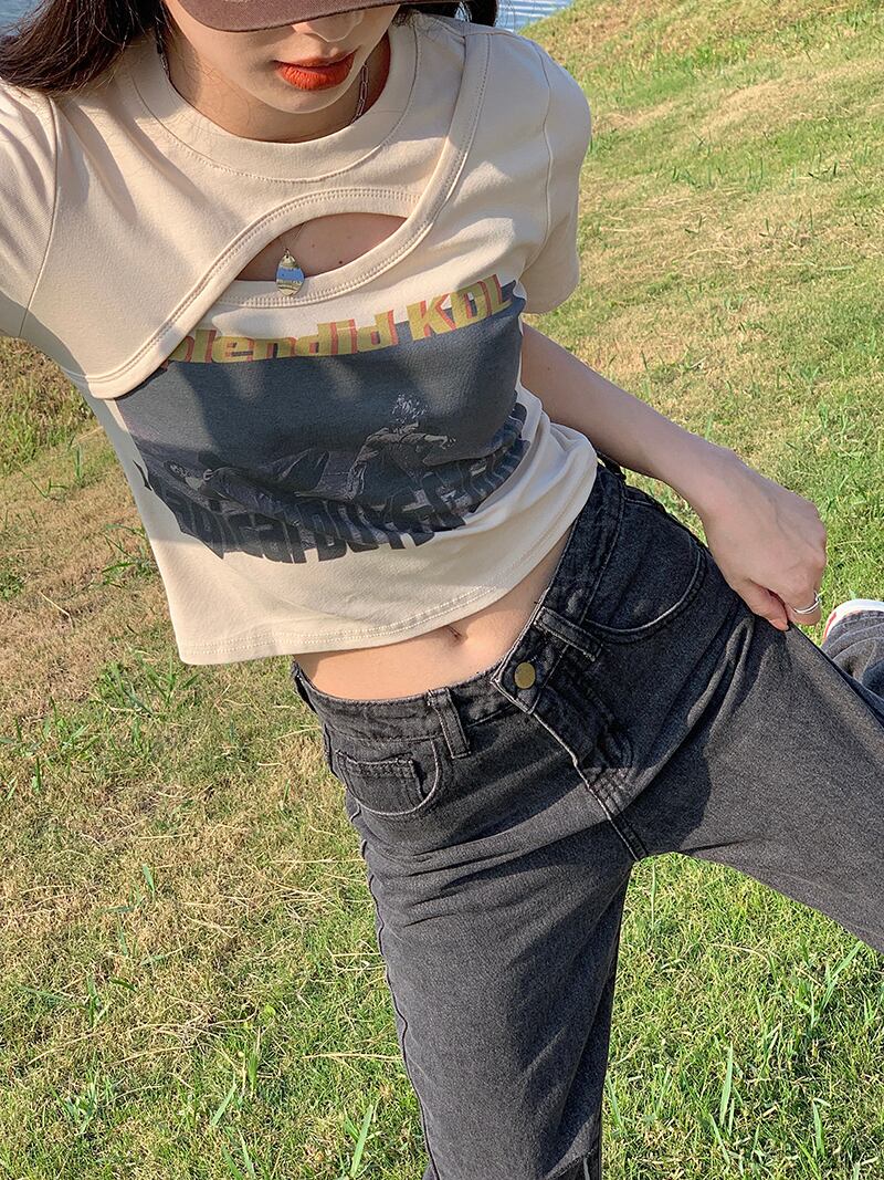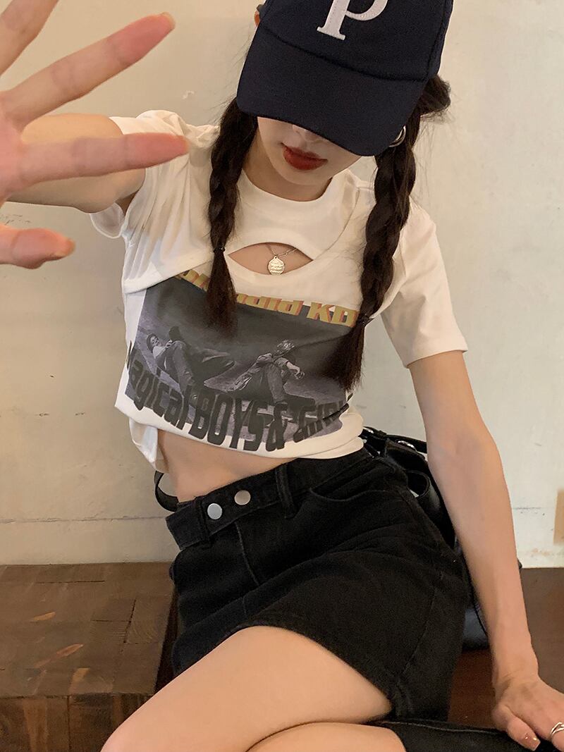 ショートTシャツ シャツ クロップドサマープリントレディース 夏物 misskkl96158887548