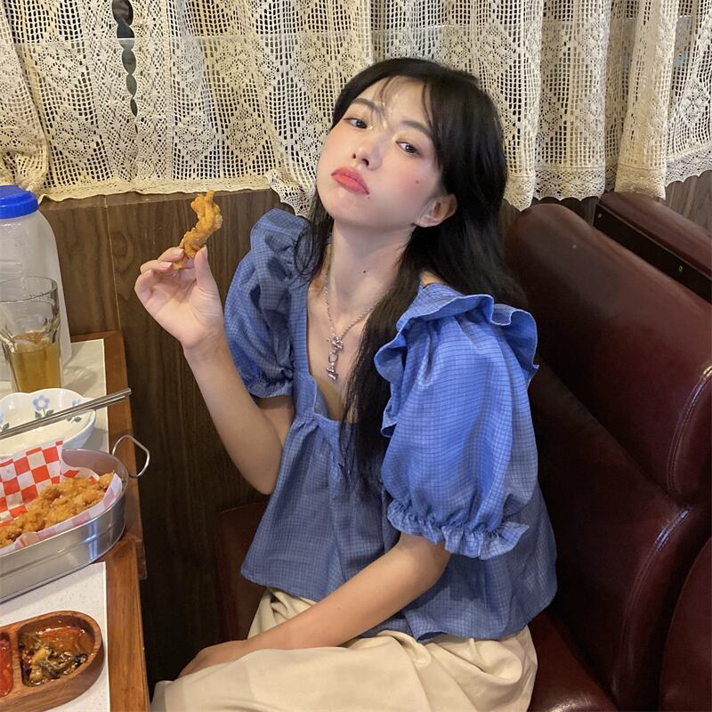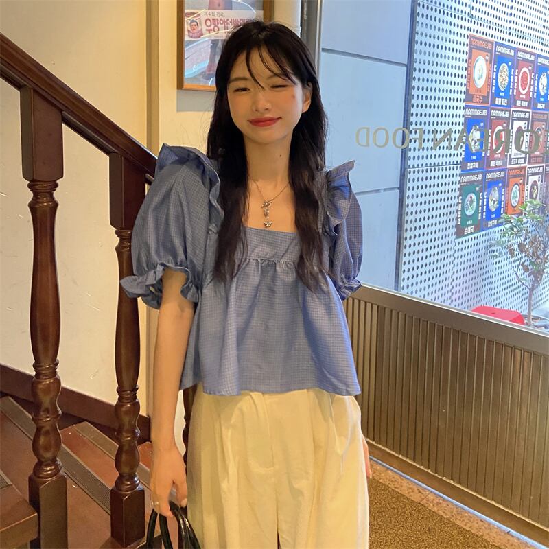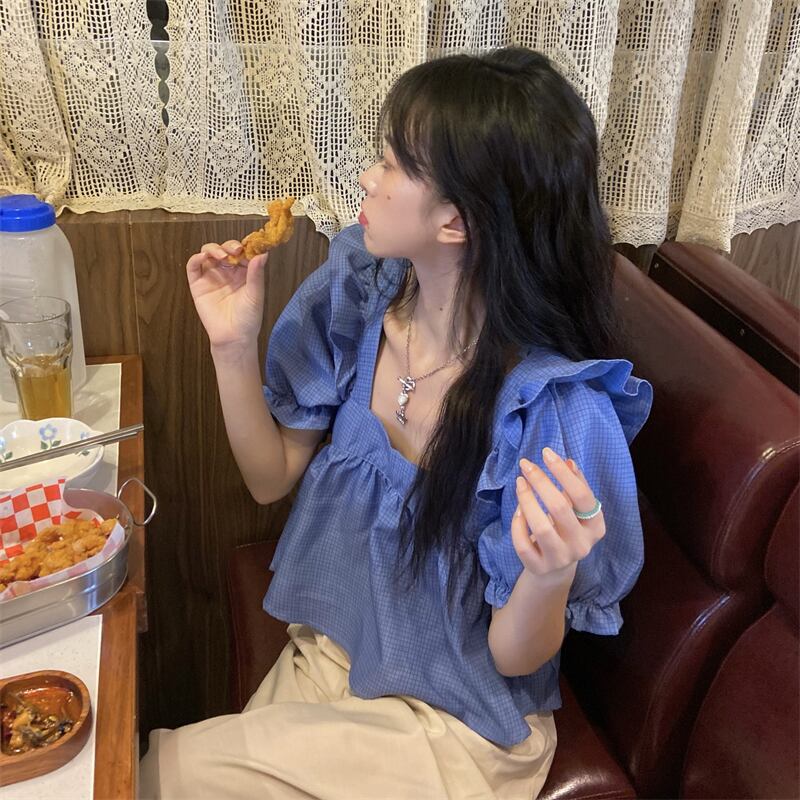 スリーブトップス レディースサマーカラーシャツ ショート格子柄 夏物 スクウェア misskkl10567409670