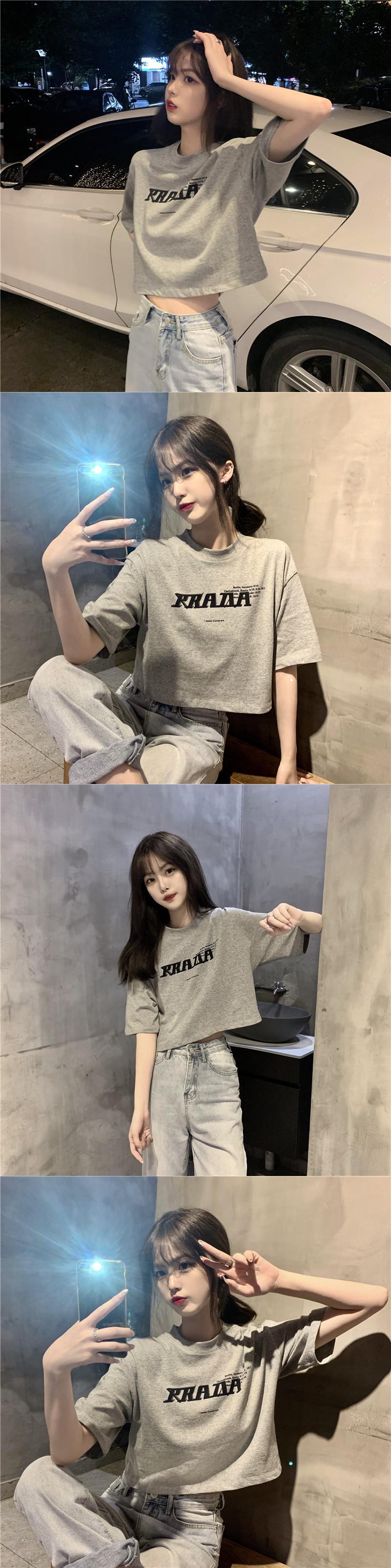 サマールーズラウンドネックプリントショートTシャツ トップス 夏物 Oネック misskkl724715531