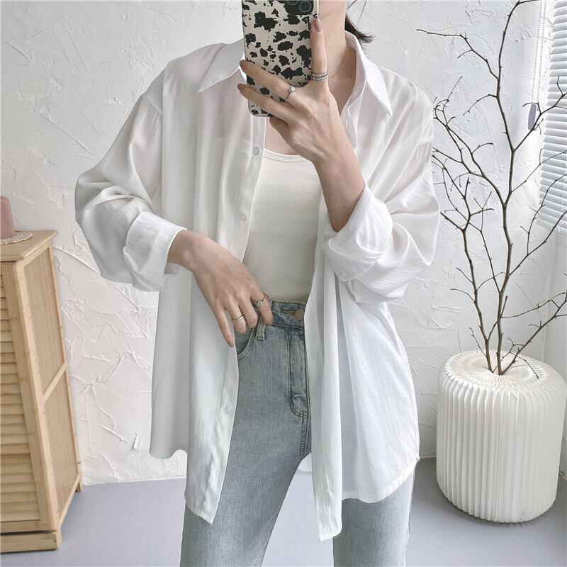 ホワイトシャツ サマールーズ薄手 ロング 夏物 misskkl98935344492