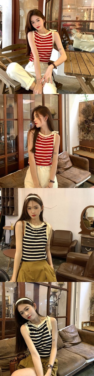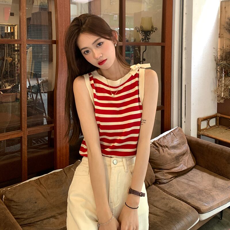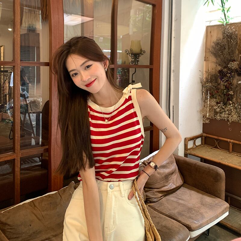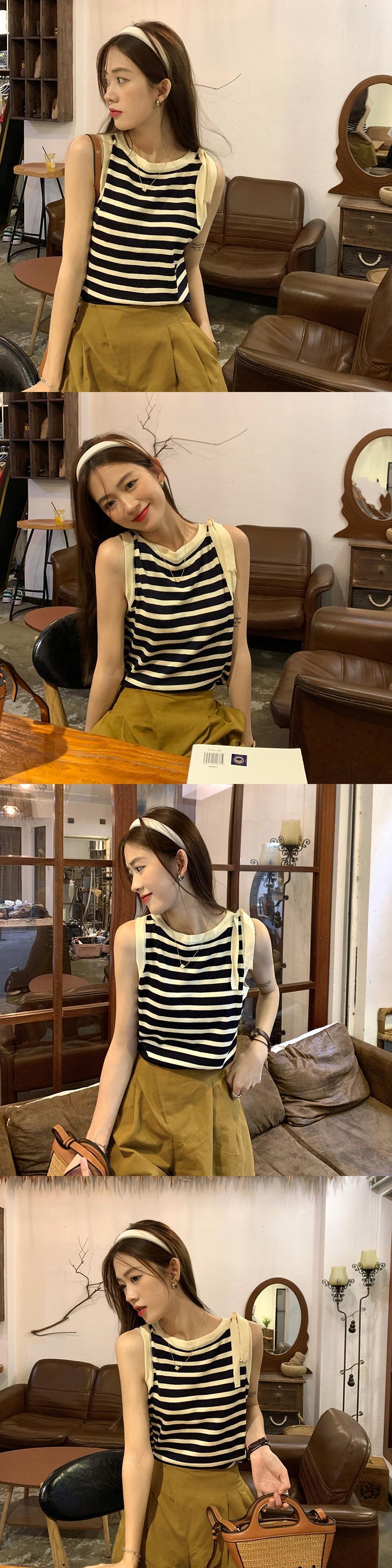 トップス ストライプニットサマースタイルノースリーブTシャツ 夏物 misskkl44258374938