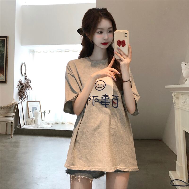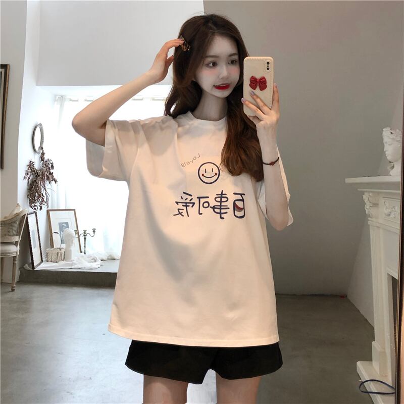 Tシャツ サマースタンダードルーズプリント柄トップス レトロ 夏物 misskkl34996125107