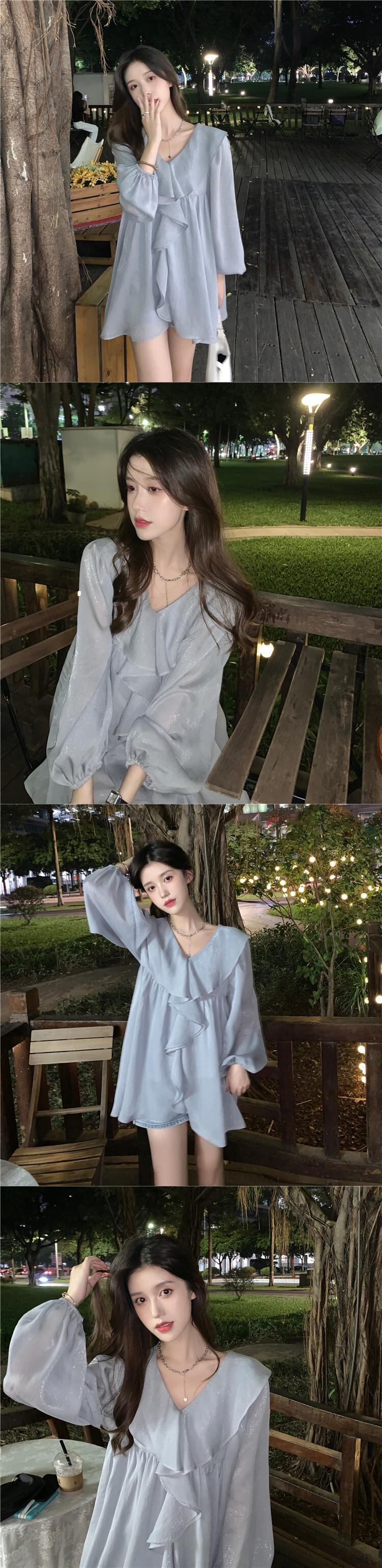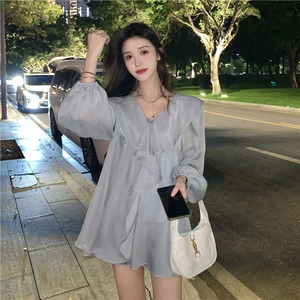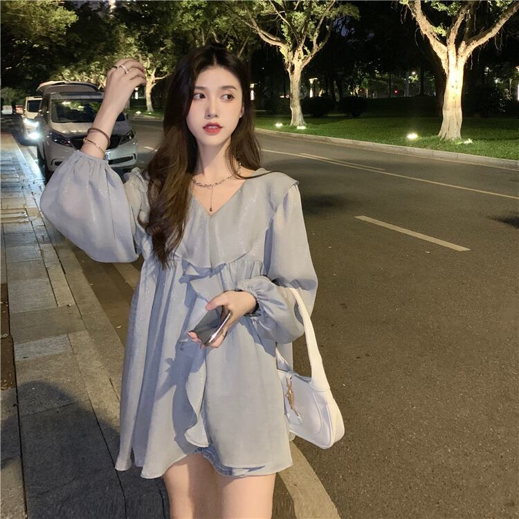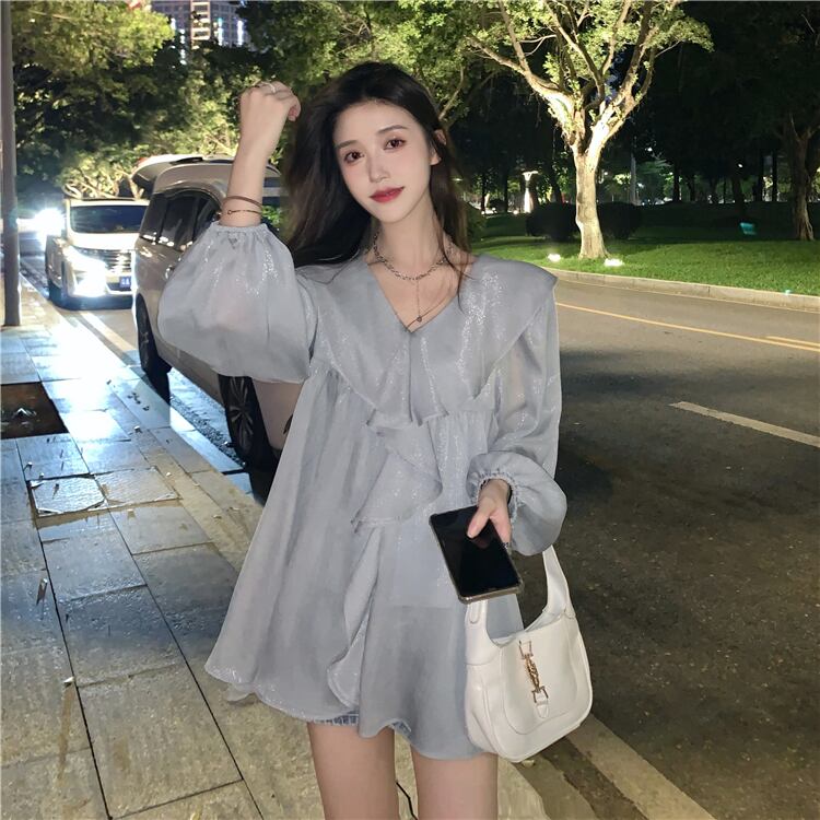 カラーブラウス シフォンシャツ オータム薄手 ロング 秋物 misskkl89482558760