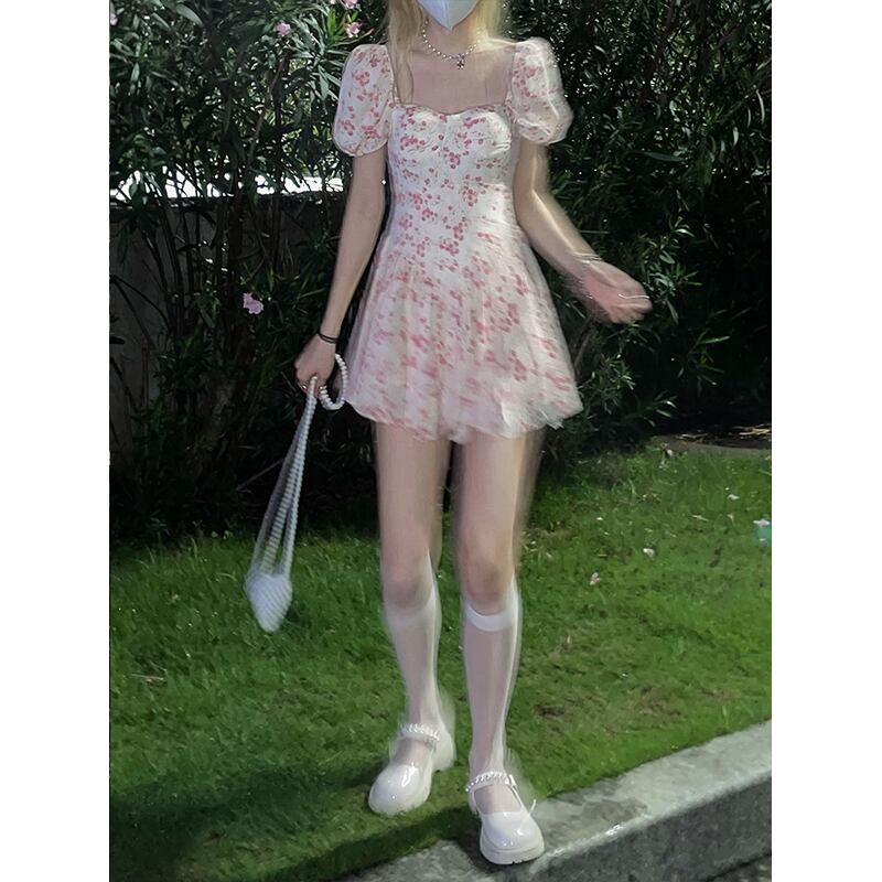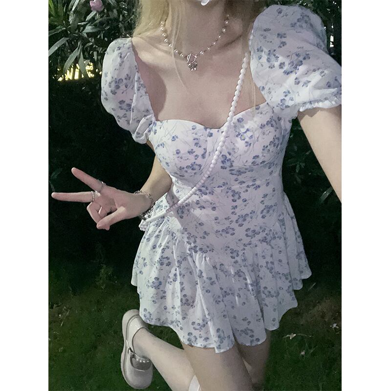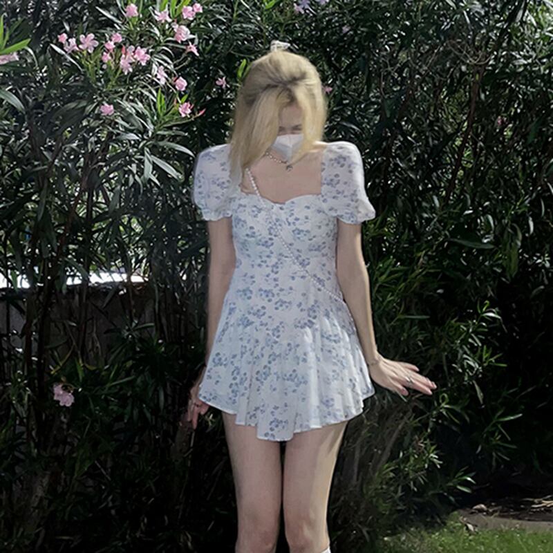 フローラルドレス ショートスカート サマーウェストスリム 大人ガーリー スウィート キュート カジュアル 夏物 花柄 スクウェア misskkl525352257