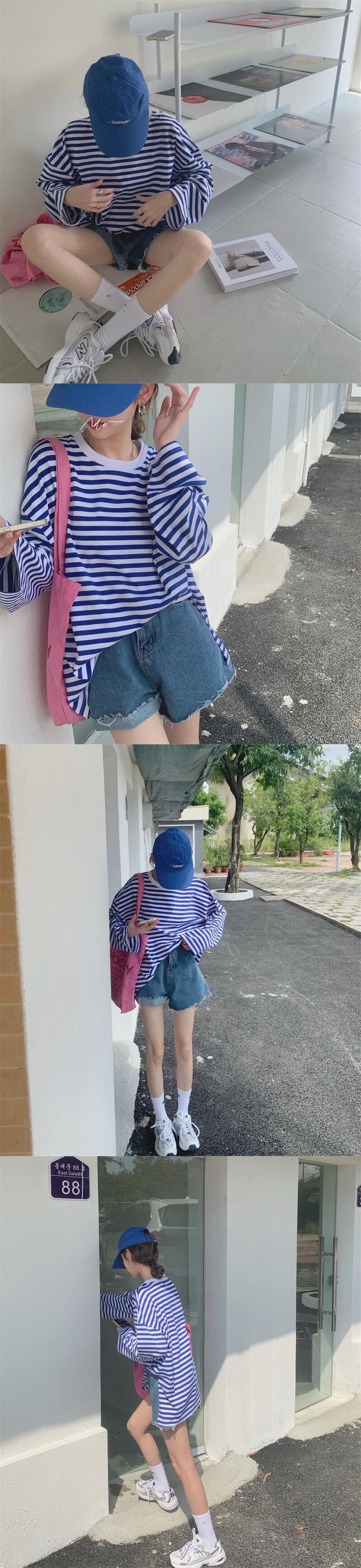 ブラウス レディースサマールーズカジュアルストライプTシャツ トップス ロング 夏物 misskkl96002649996