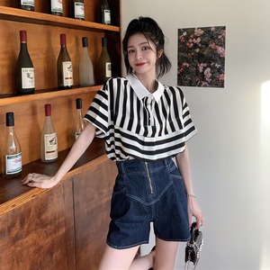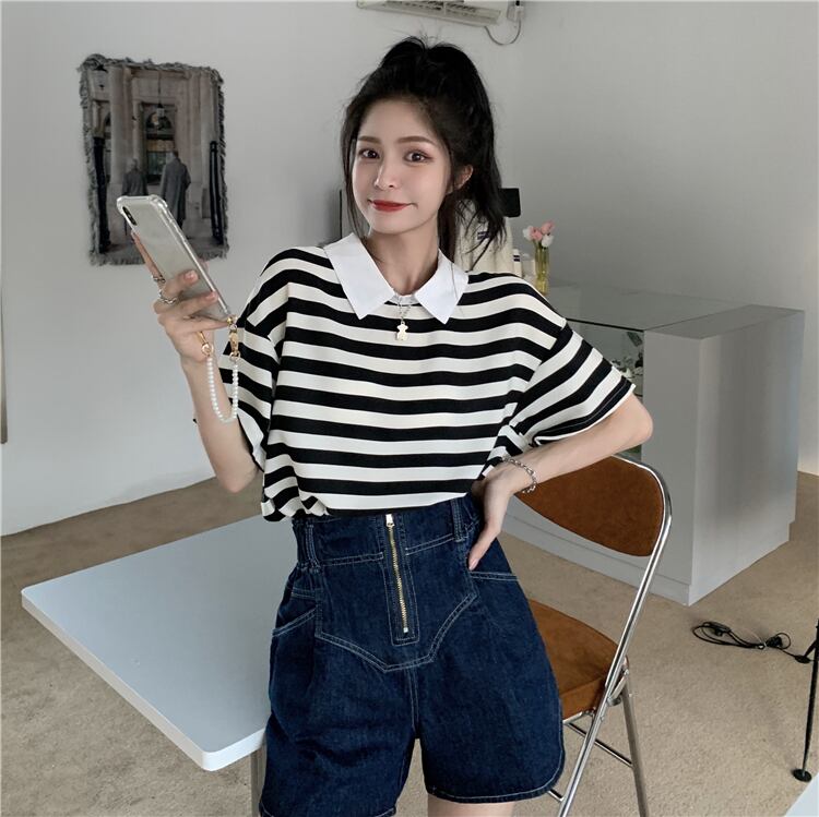 カラーブラックホワイトストライプTシャツ サマールーズトップス 夏物 misskkl55071953577
