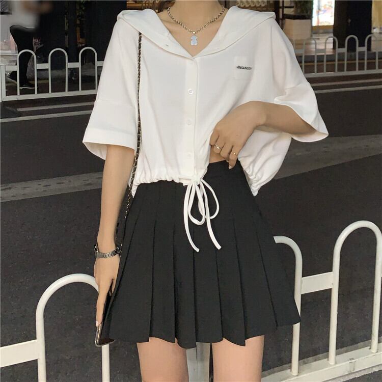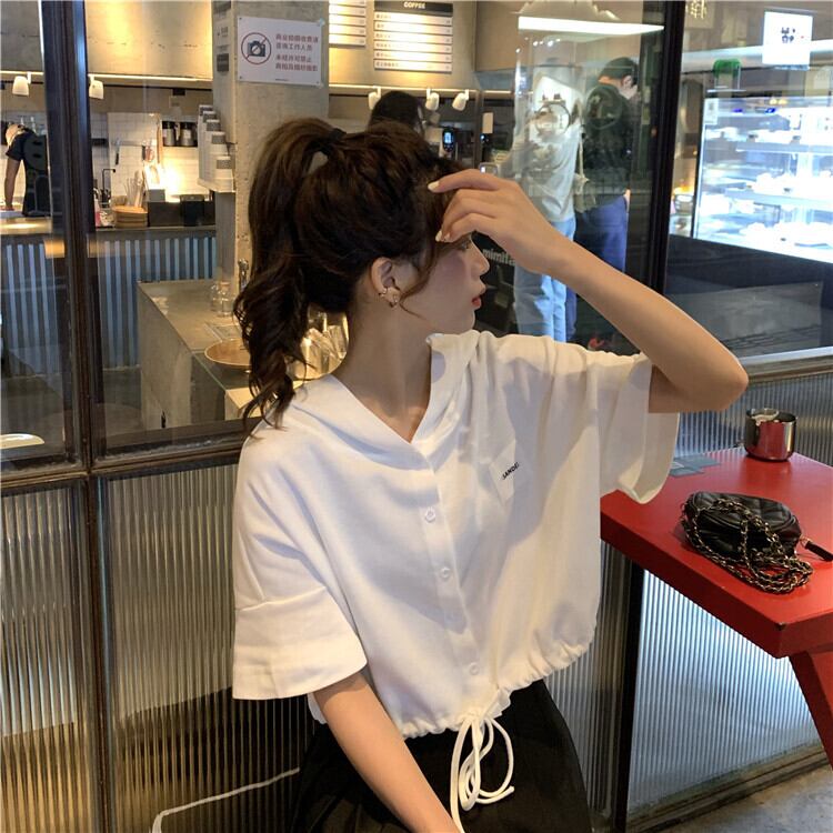 サマールーズショートフードギャザーTシャツ トップス 夏物 misskkl4671492101