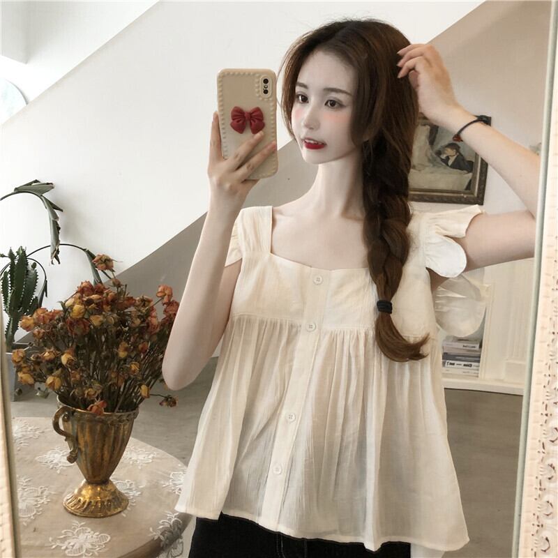 カラーシャツ サマースリーブトップス 大人ガーリー スウィート キュート カジュアル 夏物 スクウェア misskkl44296120955