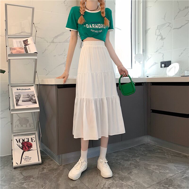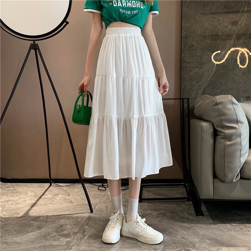 サマーハイウェスト薄手ホワイトスカート Aライン 夏物 ステッチ misskkl87995531600