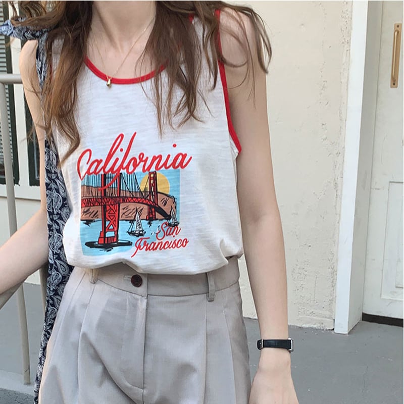 サマースタンダードプリントカラースリムTシャツ トップス レトロ 夏物 misskkl91267202411