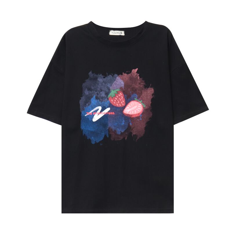 色:黒の水彩ストロベリーTシャツ,白い水彩イチゴTシャツ
