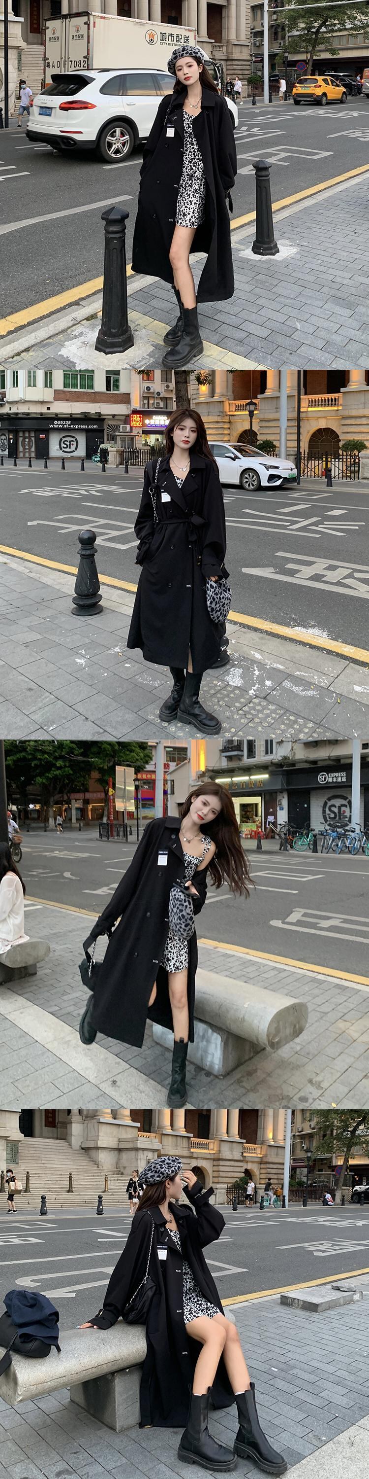 ブラックジャケット スプリングオータム薄手スタイルロングコート 春物 秋物 misskkl58151406631