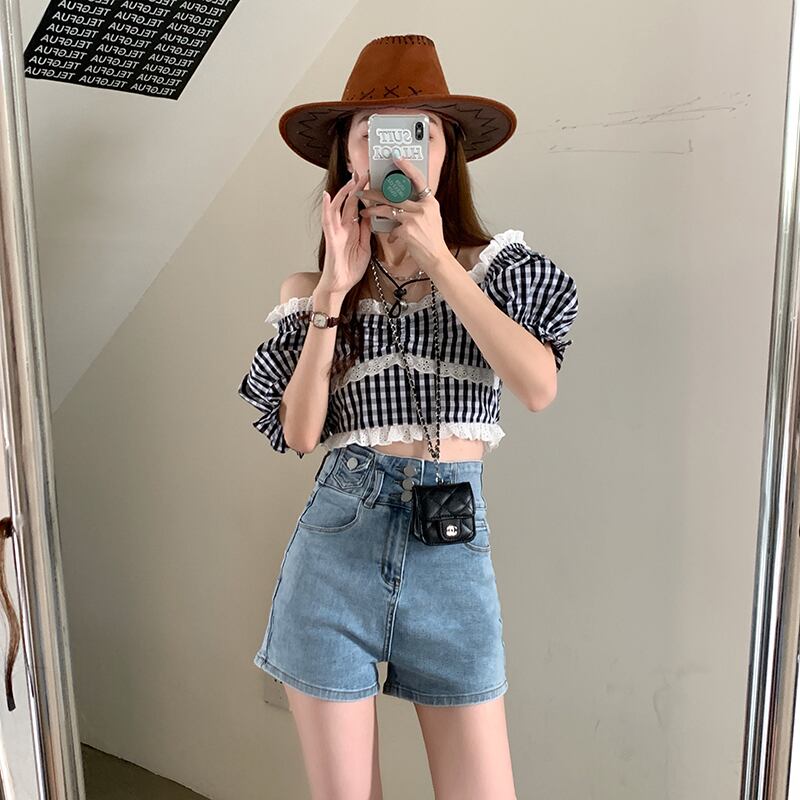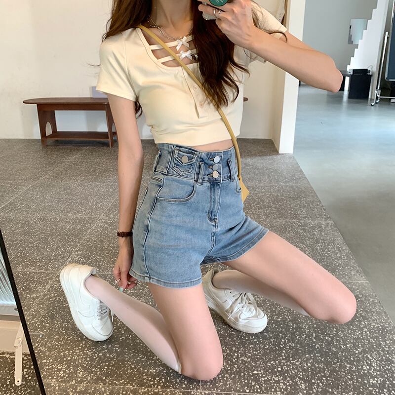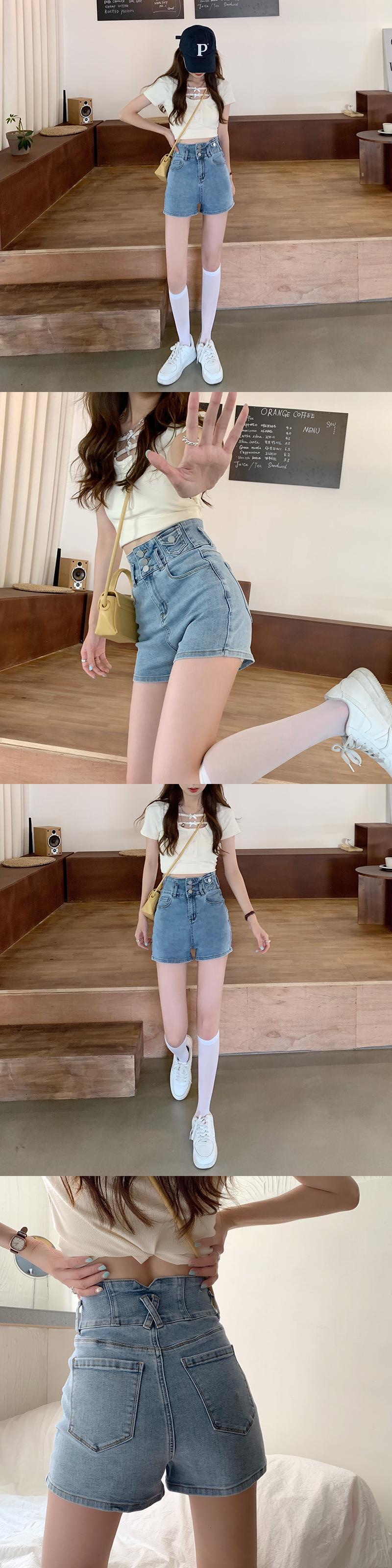 ショーツ ジーンズ サマーハイウェストパンツ レッド 夏物 ブルマー misskkl59588401616