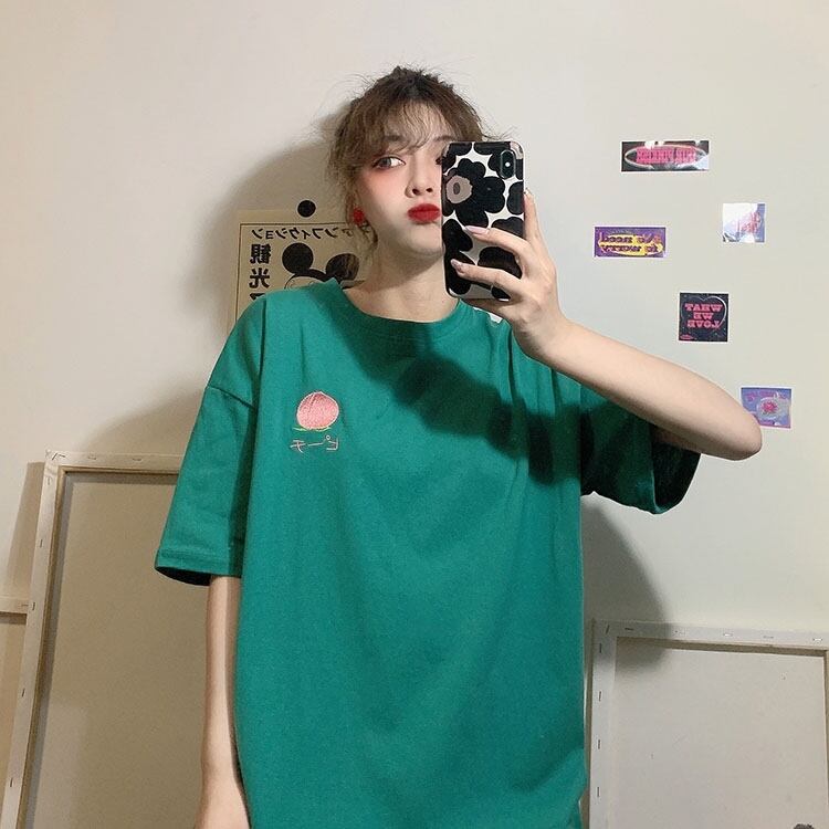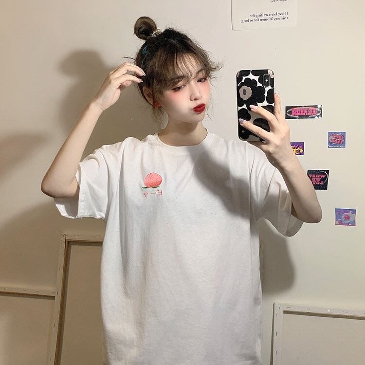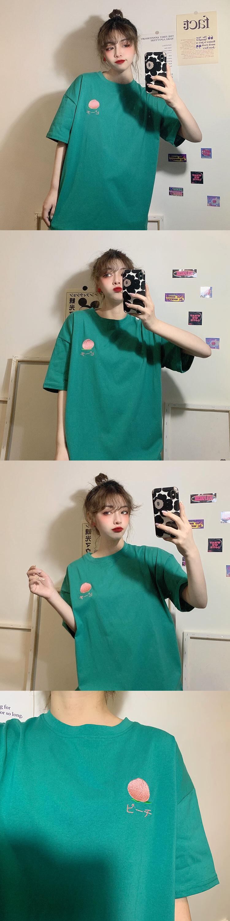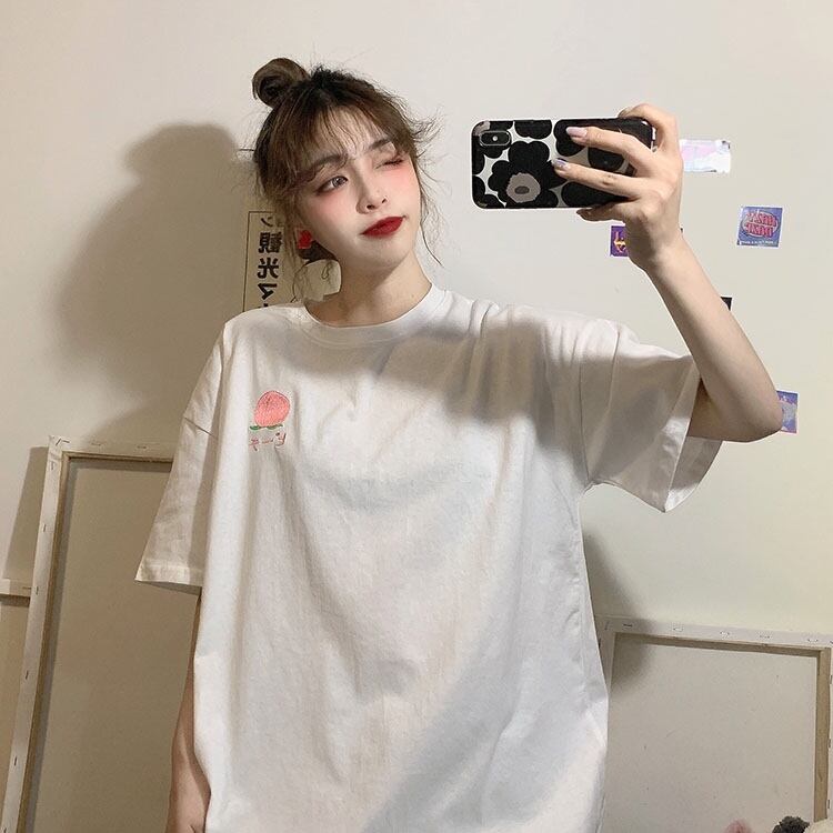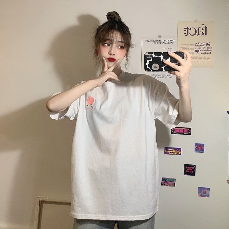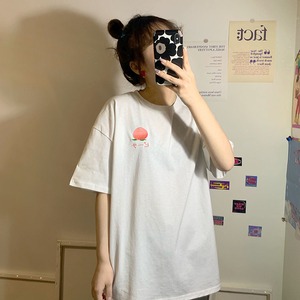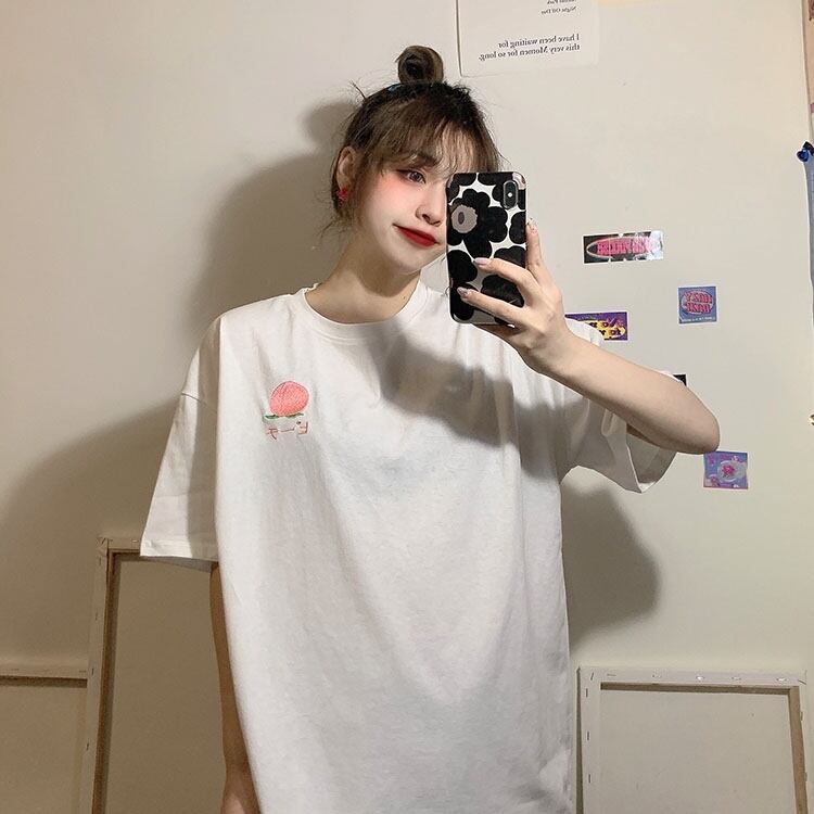 スプリングルーズスタイルホワイトTシャツ トップス ロング レッド 刺繍 春物 misskkl5176088135