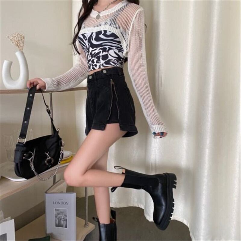 サマースタンダードスタイルサイドジッパーハイウェストウェスト薄手Aラインショーツ パンツ レトロ 夏物 ブルマー misskkl77706229539