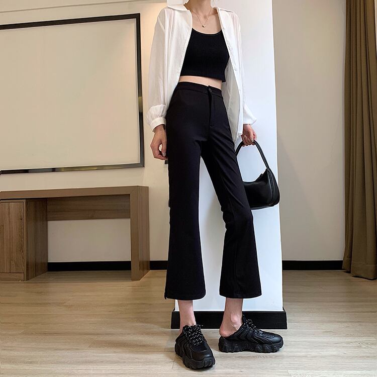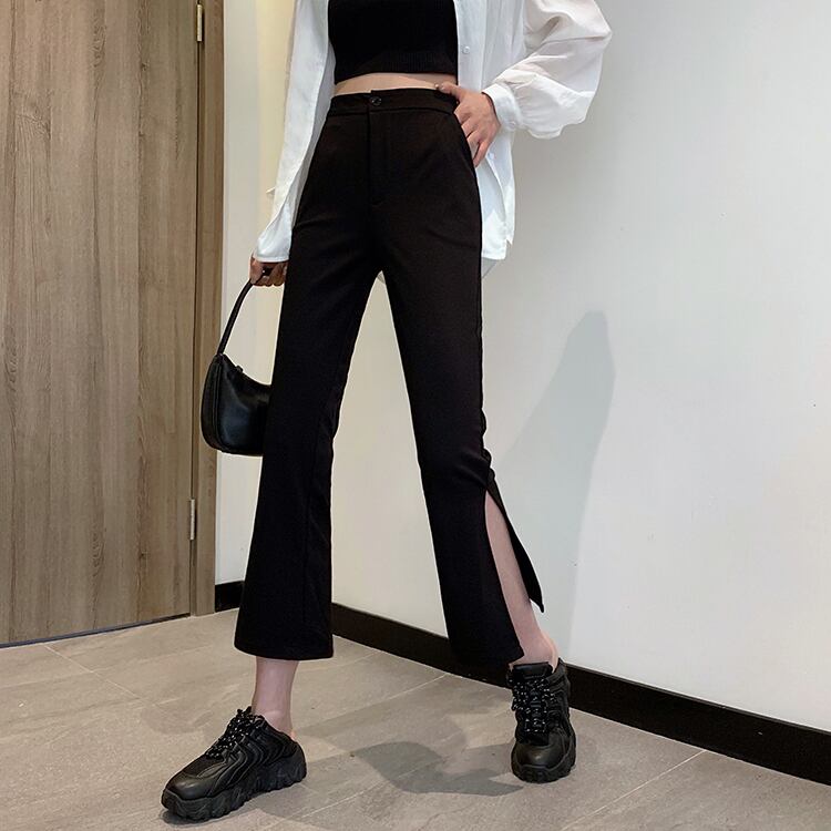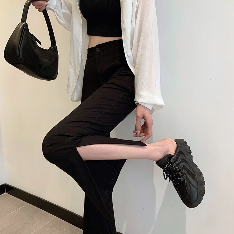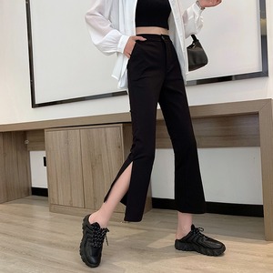 サマースタンダードスリットハイウェストウェスト薄手カジュアルパンツ レディース レトロ 夏物 misskkl51336949711
