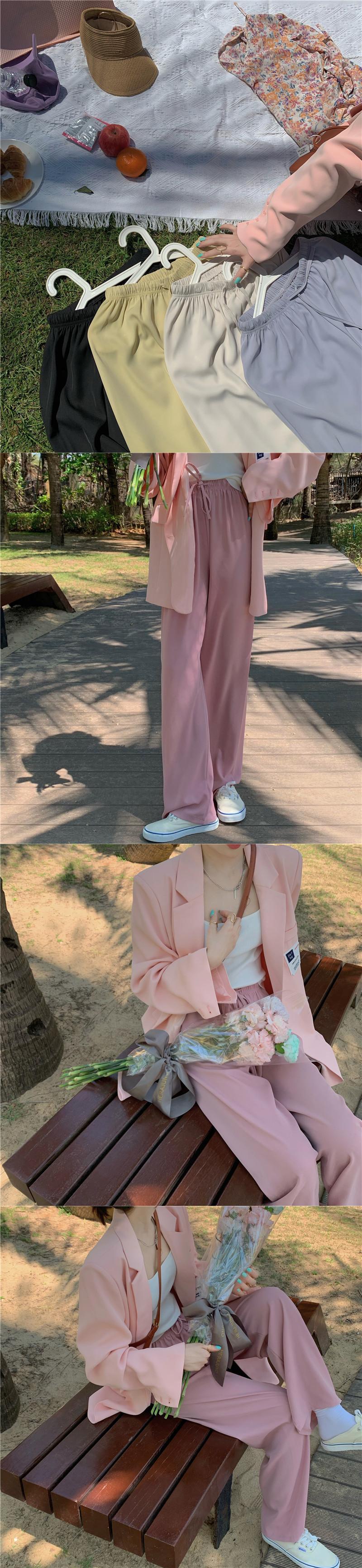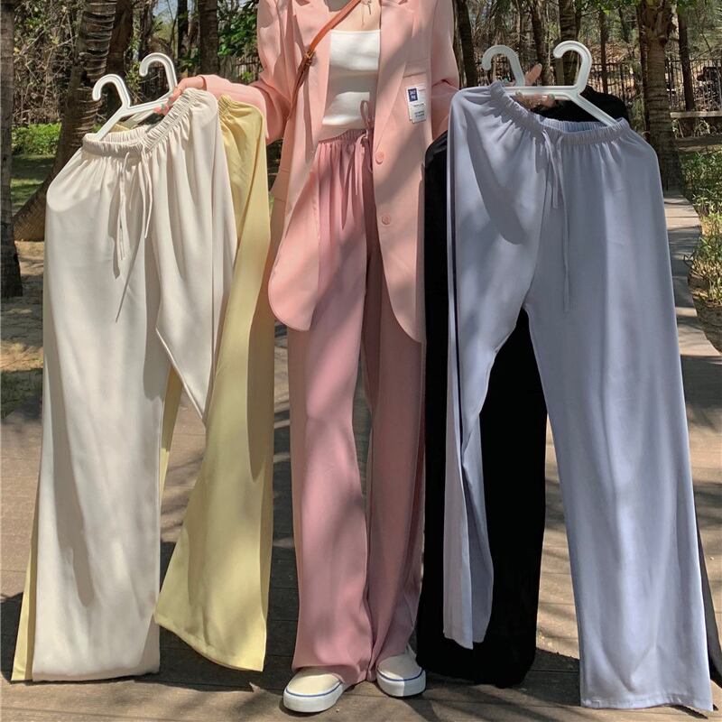 サマーストレッチハイウェストウェスト薄手ワイドレッグカジュアルレディースパンツ エラスティック 伸縮 夏物 ワイドパンツ misskkl63994239033