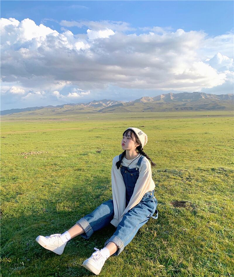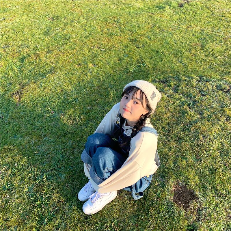 色:シングルベージュベージュセーター,ダークブルーのよだれかけパンツ