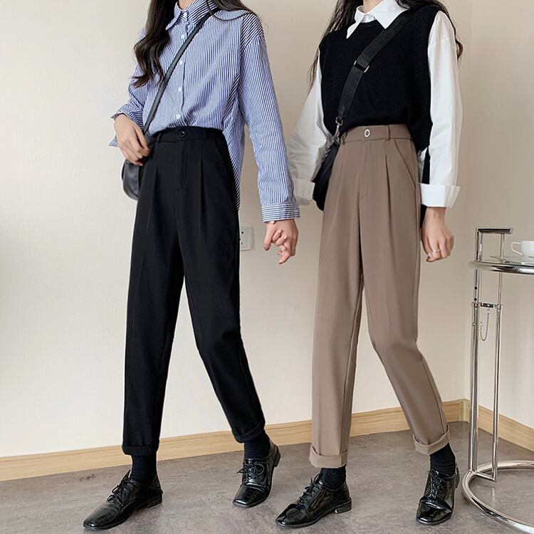 パンツ オータムスタンダードハイウェストウェスト薄手ブラック レトロ 秋物 misskkl7766164039