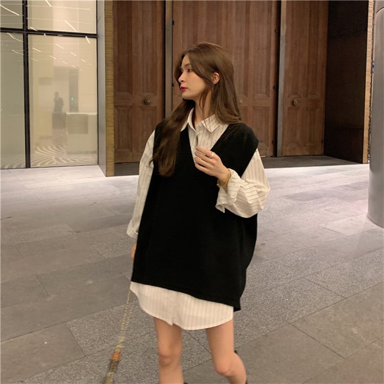 ブラックニット サマースタイルルーズVネックドレス 夏物 misskkl44579741765