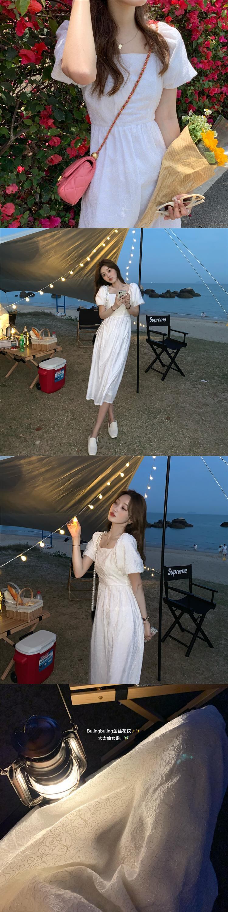 サマースタイルウェストカラーレースドレス スカート 夏物 スクウェア misskkl34103913029