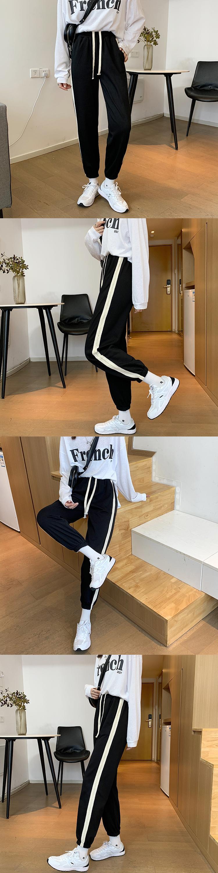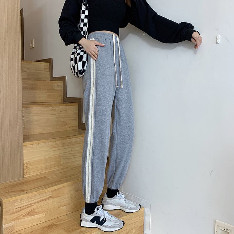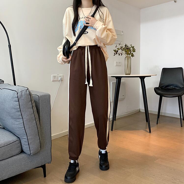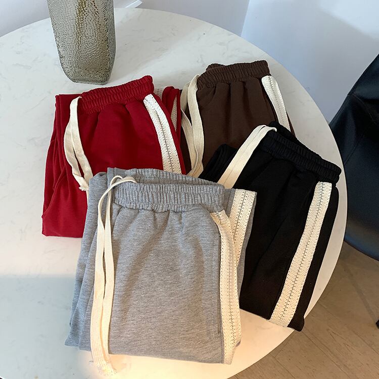 サイドストライプスプリングオータムハイウェスト薄手レッドパンツ レディース 春物 秋物 misskkl4455369465