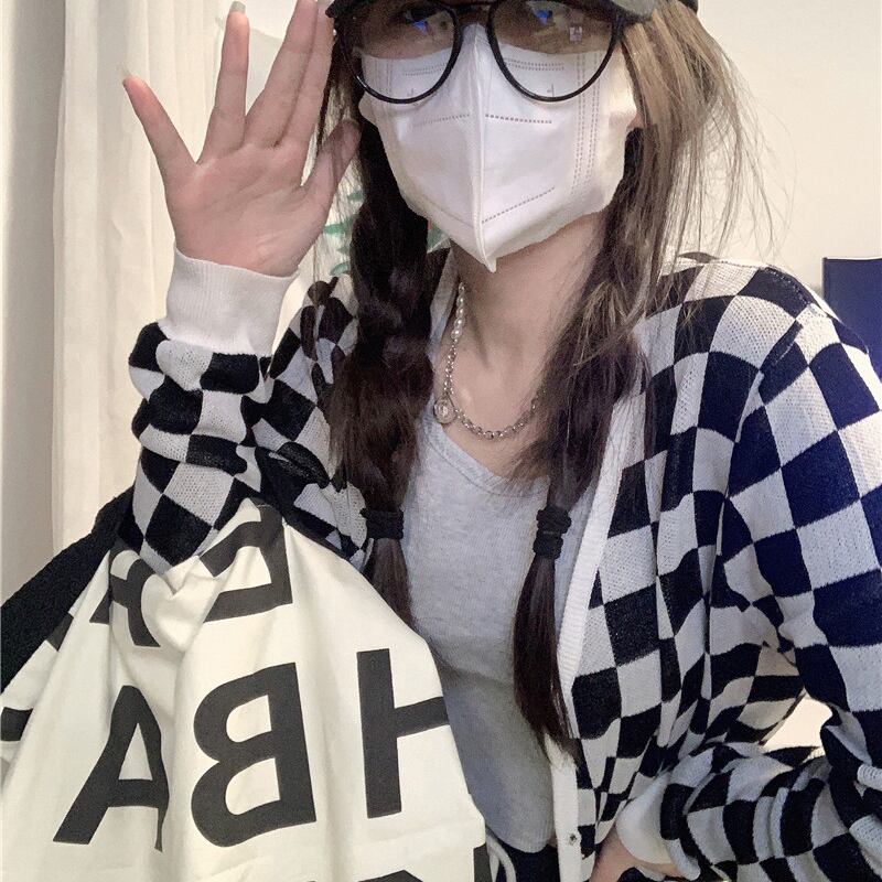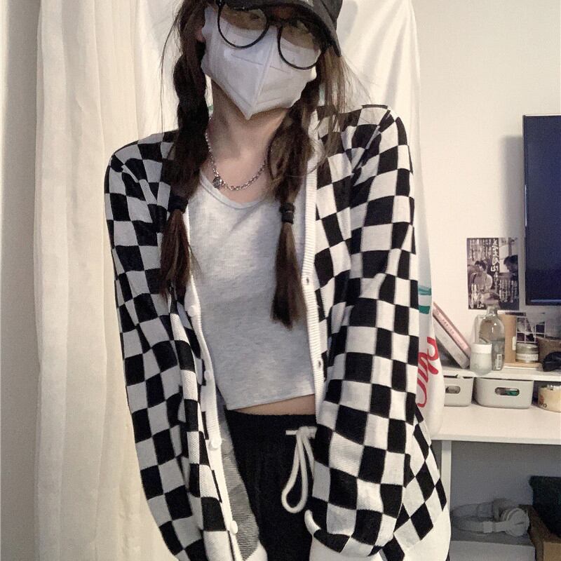 オータムジャケット 薄手ニットセーター スタンダード格子柄ルーズ長袖スリーブレディース ロング レトロ ストリート 秋物 misskkl26401285937