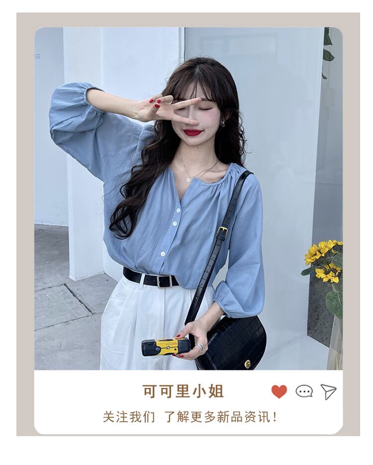 スプリングオータムスタンダードルーズブルーシャツ トップス レディース ロング レトロ 春物 秋物 misskkl44541289155