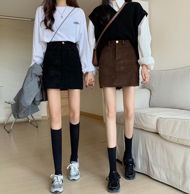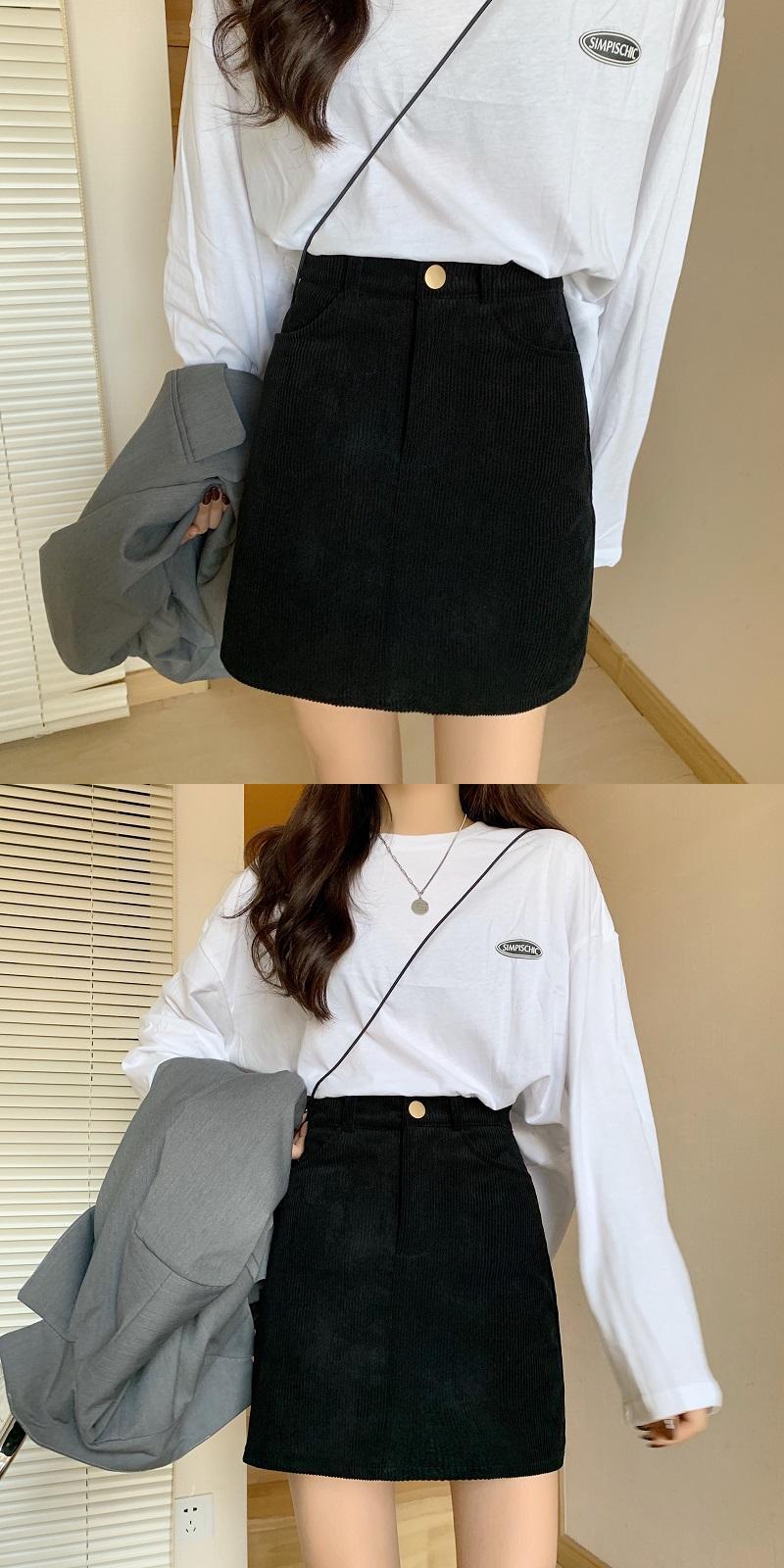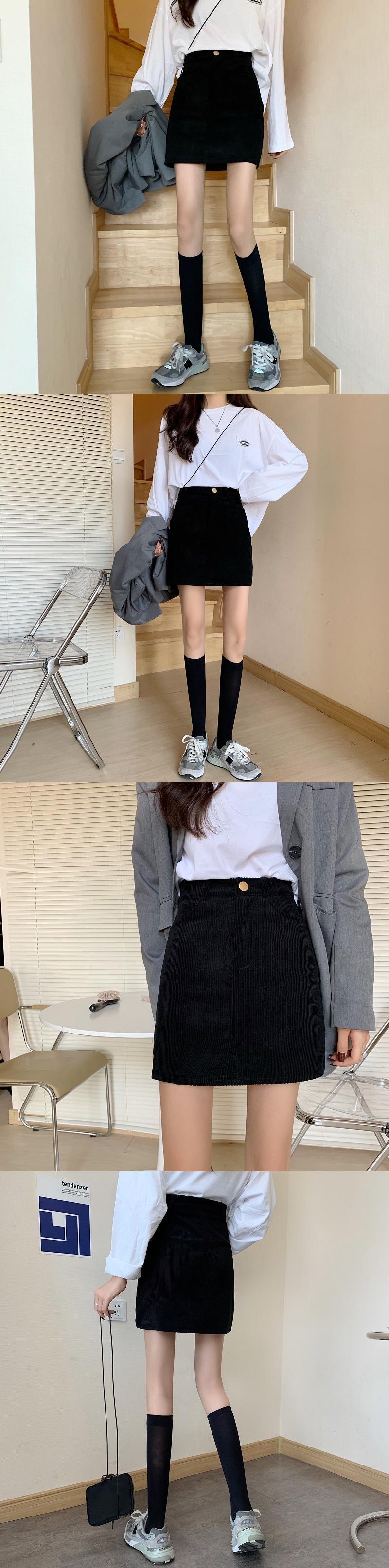 コーデュロイスカート オータムハイウェストAラインブラックショート 秋物 misskkl40825050816
