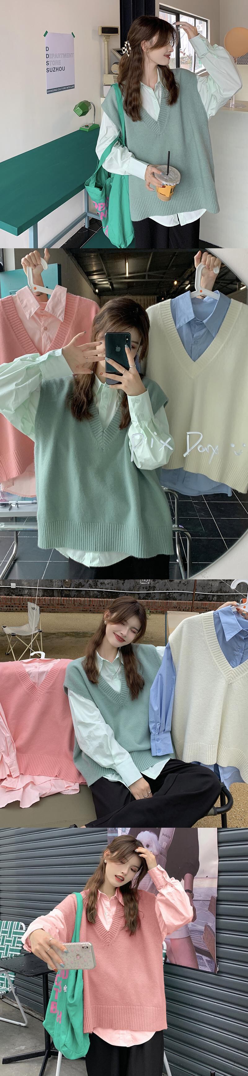 色:ピンクのベスト,青いシャツ,ピンクのシャツ,アプリコットベスト,ミントグリーンのシャツ,グリーンベスト