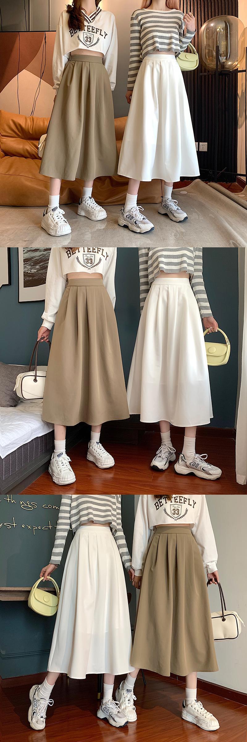 ホワイトスカート オータムウィンターレディースハイウェストウェストAライン薄手 スプリング 春物 秋物 冬物 misskkl19233843373