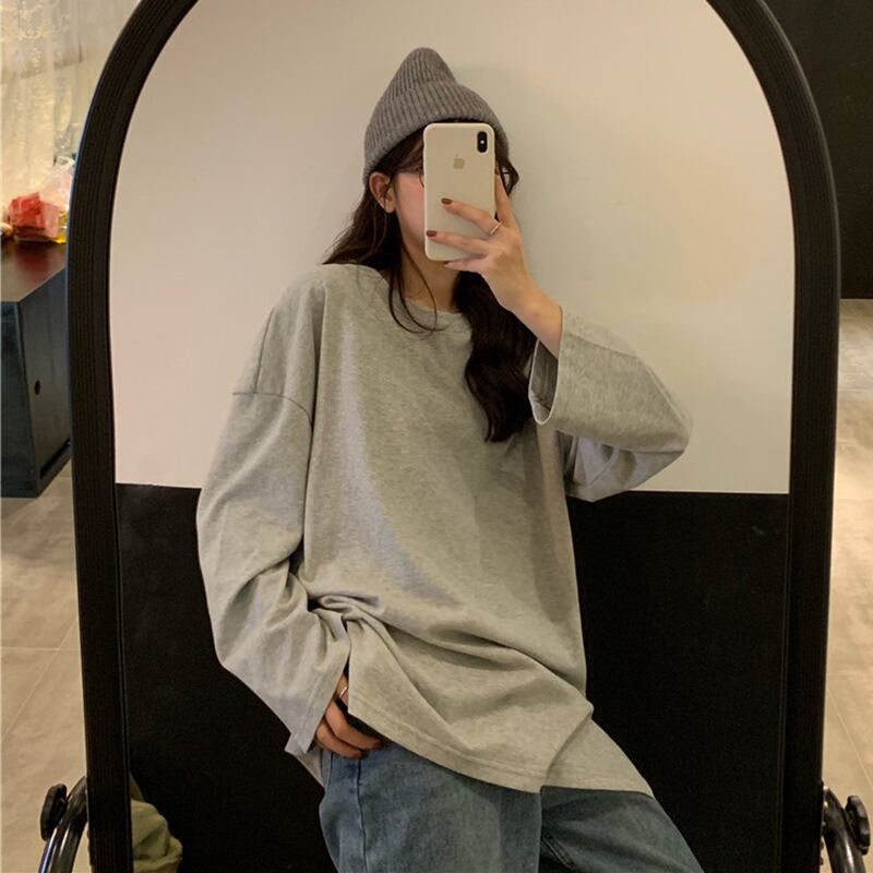 ルーズTシャツ オータムホワイトスリットショートブラウス ロング 秋物 misskkl16988751454