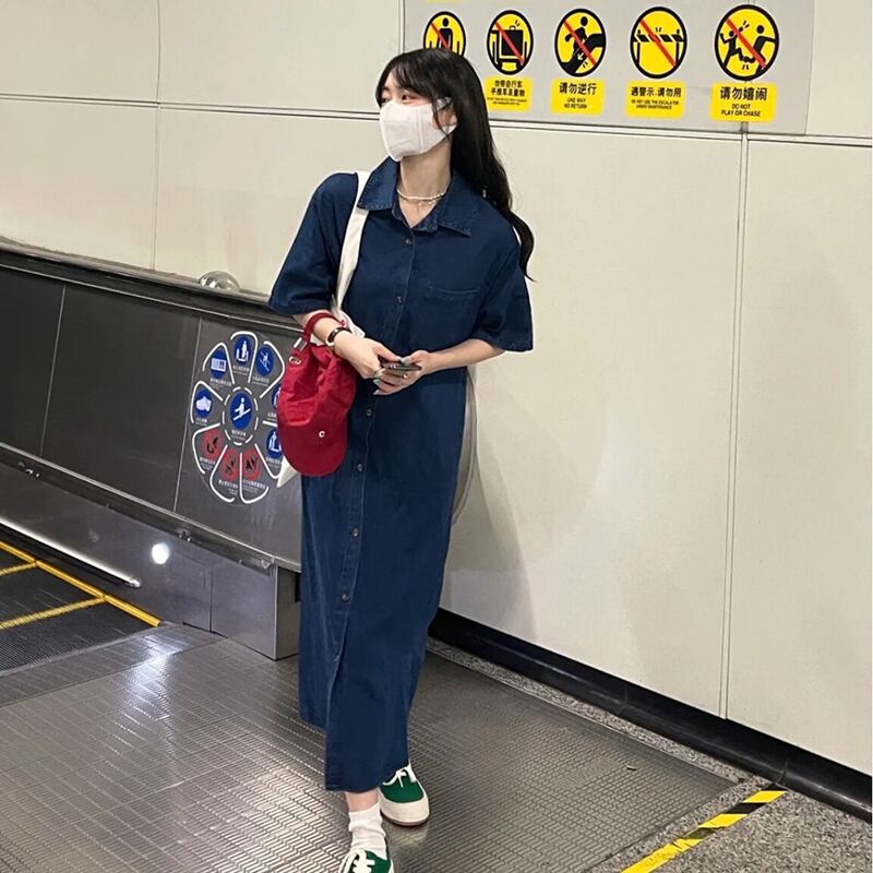 サマーロング薄手ダークカラー半袖スリーブドレス ショート ハーフスリーブ 夏物 misskkl67873701696