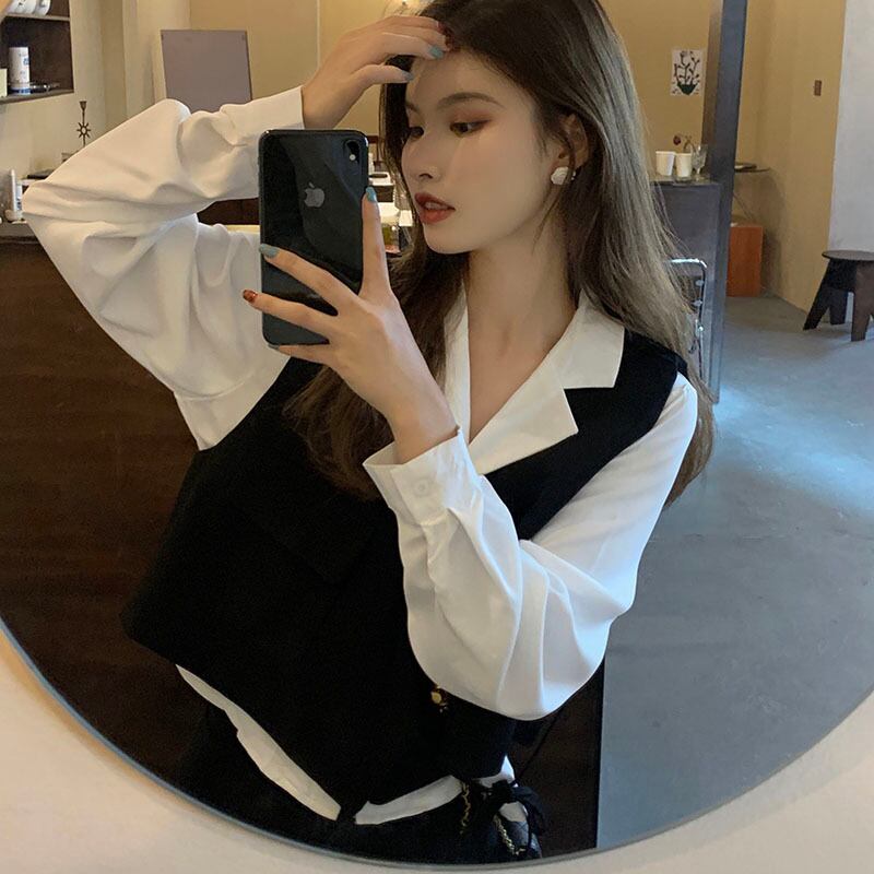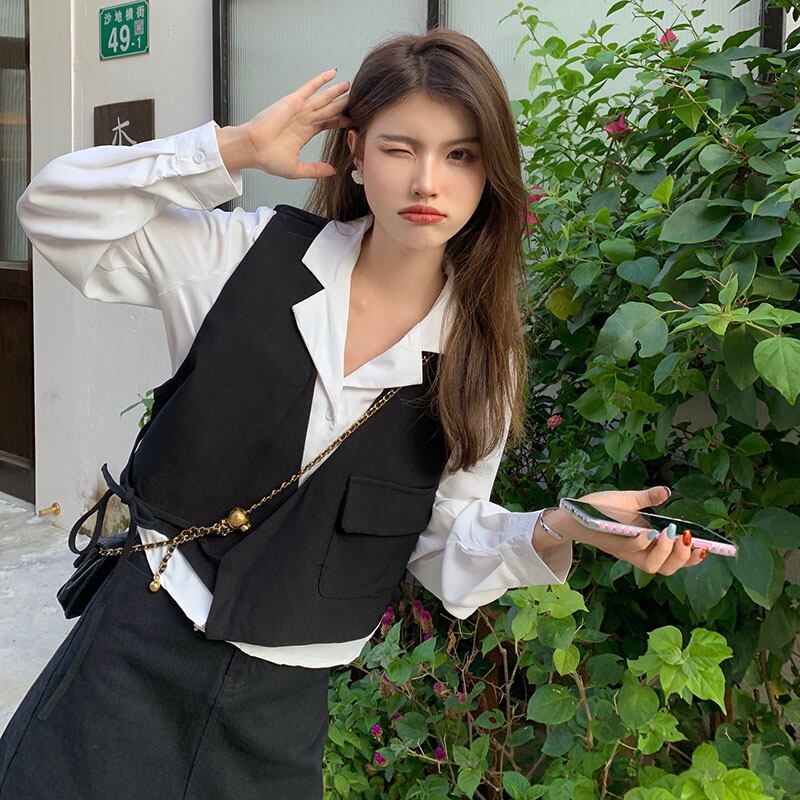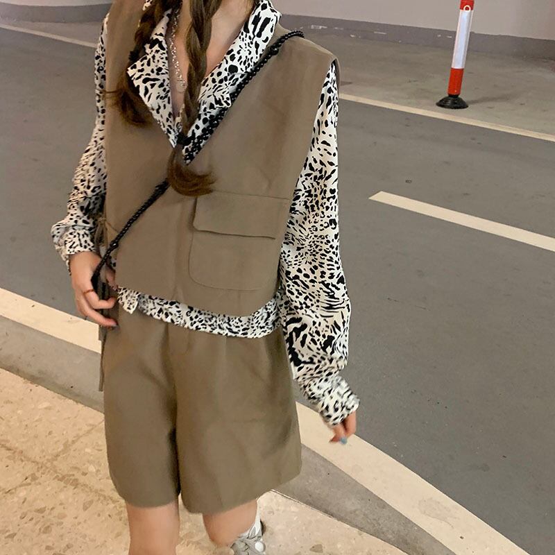 色:白のシャツ,カーキベスト,パターンシャツ,黒のベスト