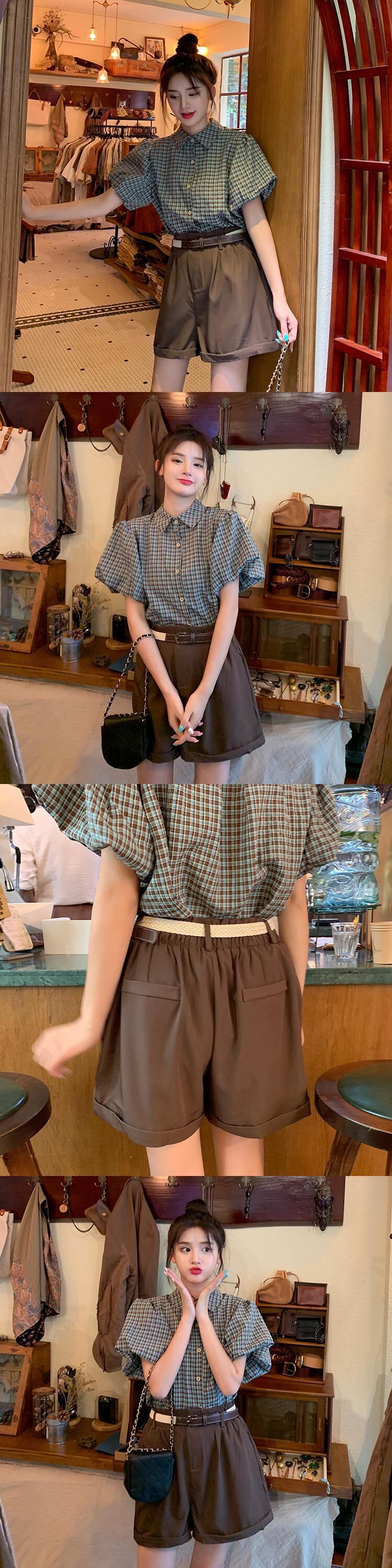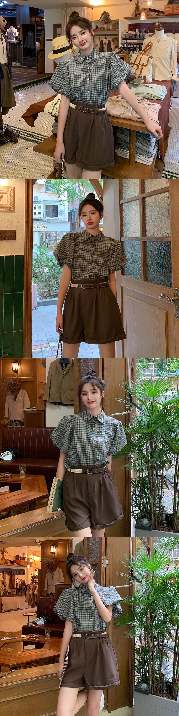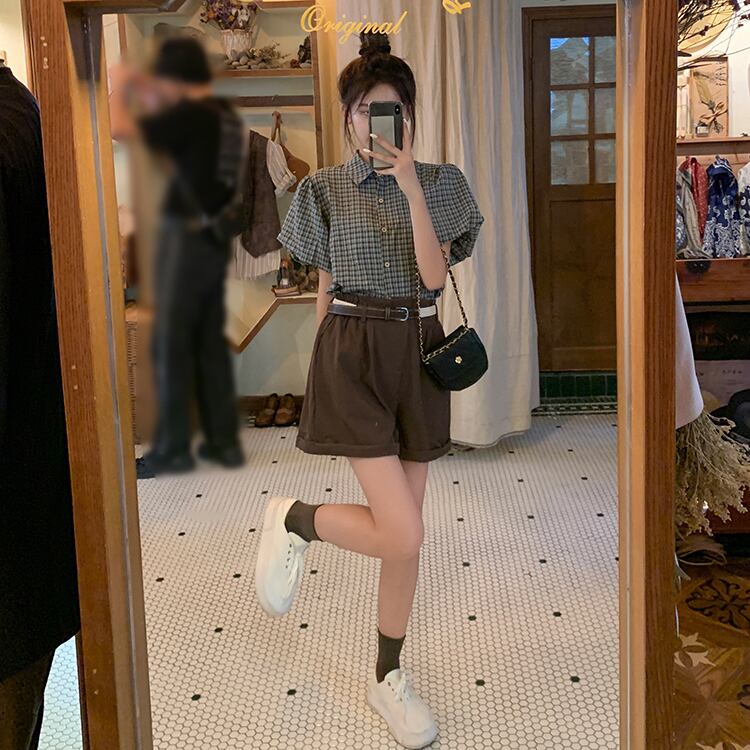 スタンダード格子柄シャツ カラーサマースタイルスリムトップス レトロ 夏物 misskkl97971980770