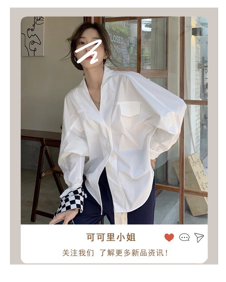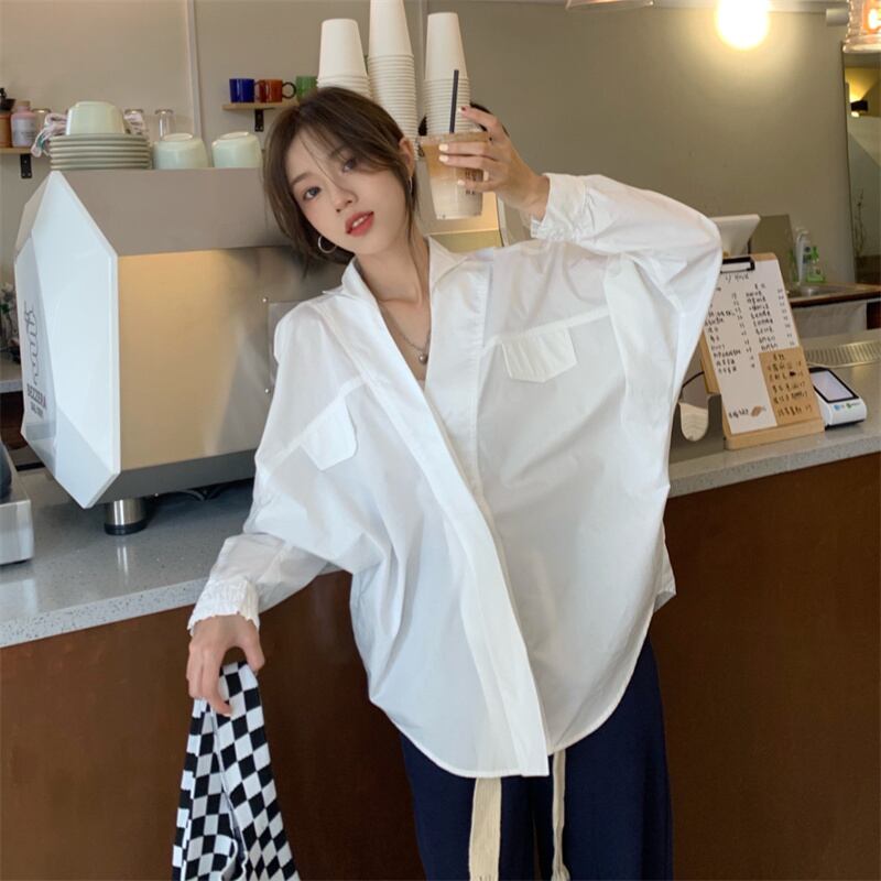 オータムVネックスリーブルーズシャツ トップス レディース ロング 秋物 misskkl61423087360